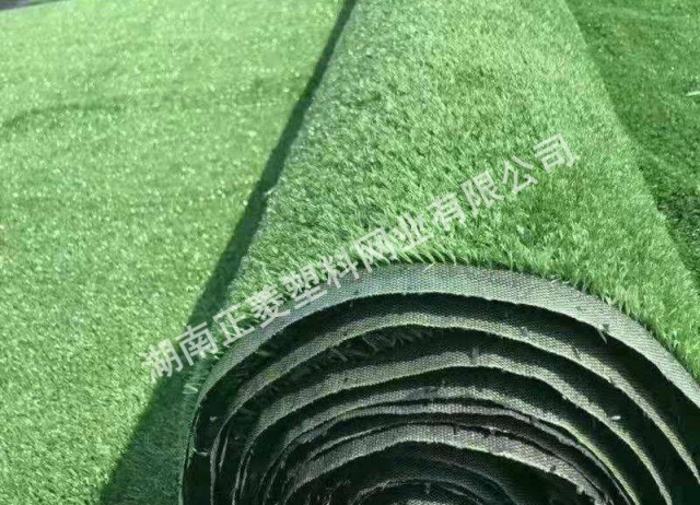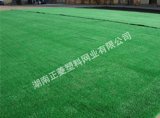 第三層,也是表層,為草皮層。依制造的表面形狀有絨毛草皮、圓環(huán)形卷曲狀尼龍絲草皮、葉狀聚丙烯纖維草皮、尼龍絲編制的透水草皮等。這一層也必須用乳膠粘在橡膠或泡沫塑料上。施工時(shí)必須全面涂膠,依次壓緊貼牢,不能起皺折。